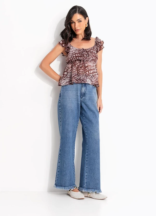 Quintess - Blusa Animal Print Marrom em Tecido Fluido