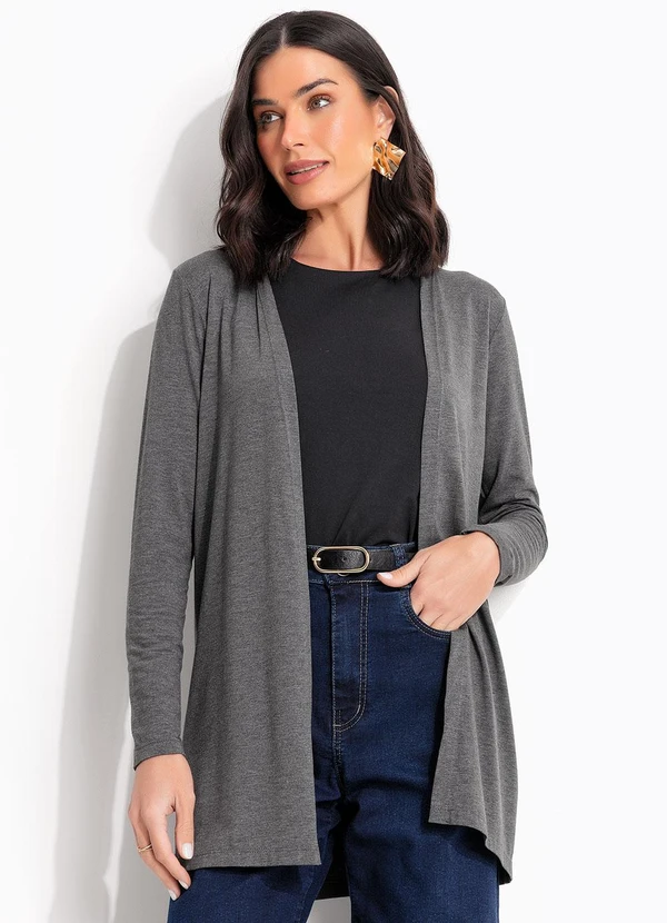 Casaco alongado em malha de viscose na cor grafite. Perfeito para compor looks casuais com toque de sofisticação. Sua modelagem solta e mangas ajustadas garantem versatilidade para diversas ocasiões. Um item essencial para o seu guarda-roupa, ideal para quem busca praticidade no dia a dia.