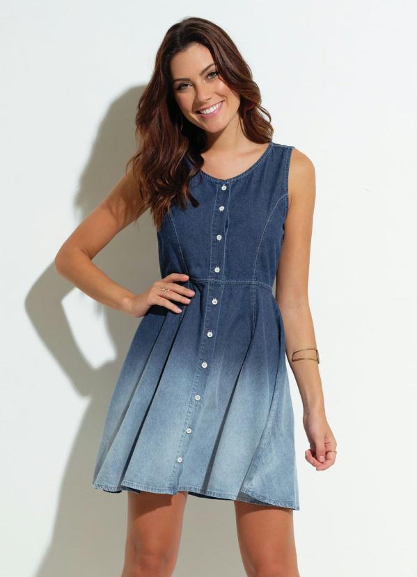 Quintess - Vestido Quintess Jeans Degradê com Botões