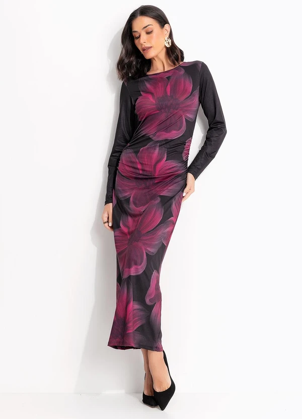 Vestido alongado em malha fria, perfeito para quem busca conforto e elegância. Ideal para diversas ocasiões, com modelagem levemente ajustada, decote redondo e franzidos laterais, este vestido valoriza a silhueta, proporcionando um caimento impecável. As mangas longas ajustadas adicionam um charme extra, tornando-o uma peça versátil e indispensável no seu guarda-roupa.