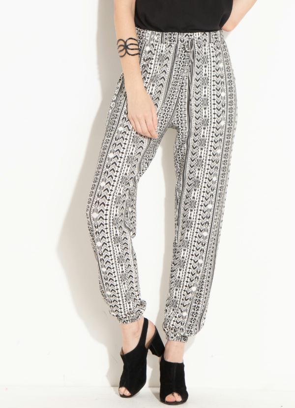 Quintess - Calça Étnica Branco com Bolsos e Amarrações