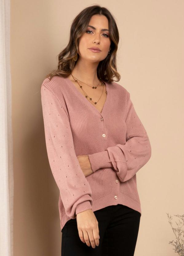 Quintess - Cardigan de Tricô RosaCom Botões Funcionais