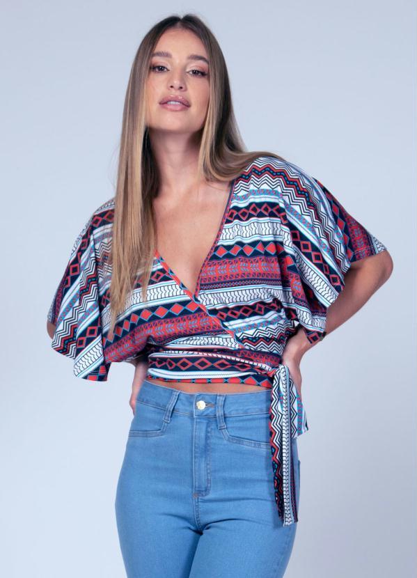 Quintess - Blusa Étnica Vermelha de Mangas Amplas