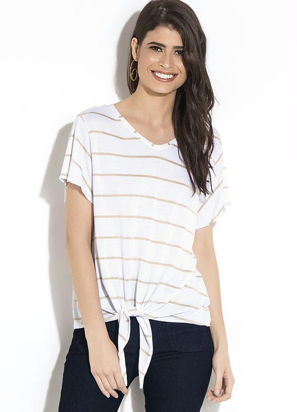 Quintess - Blusa Quintess Branco e Dourado com Amarração