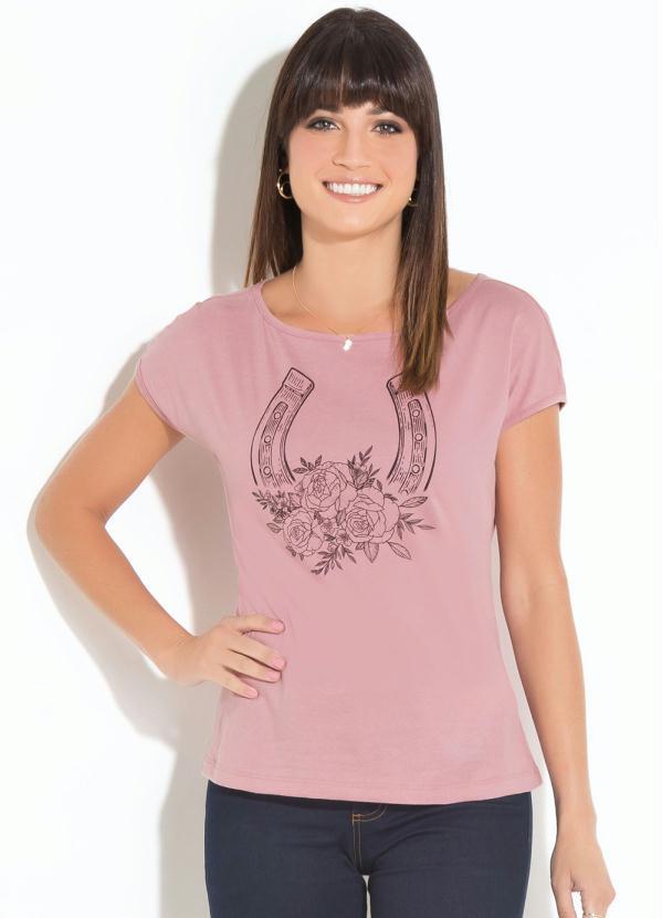 2. Quintess - Blusa Rosê Quintess Mangas Curtas com Estampa