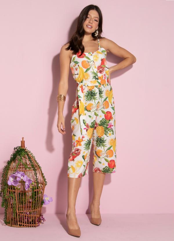 Quintess - Macacão Floral Frutado com Alças e Regulador