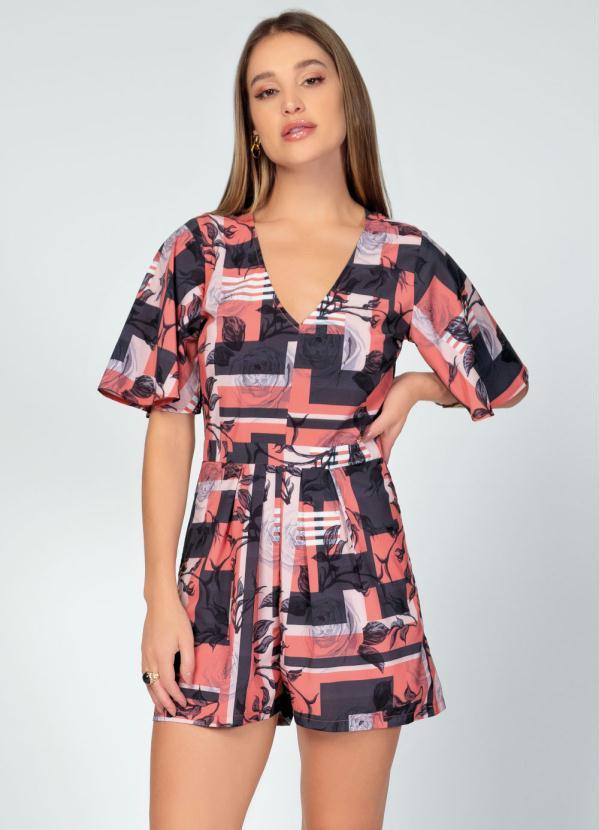 Quintess - Macaquinho Floral Laranja com Mangas Amplas