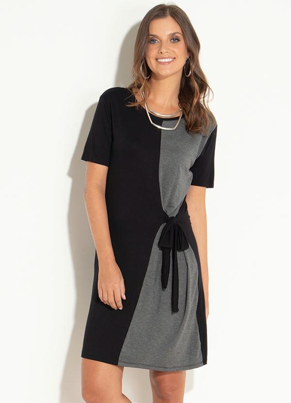 Quintess - Vestido Clássico Preto e Cinza com Amarração