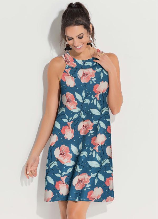 Quintess - Vestido Curto Decote Trapézio Floral Rosê - variação: Floral Tropical