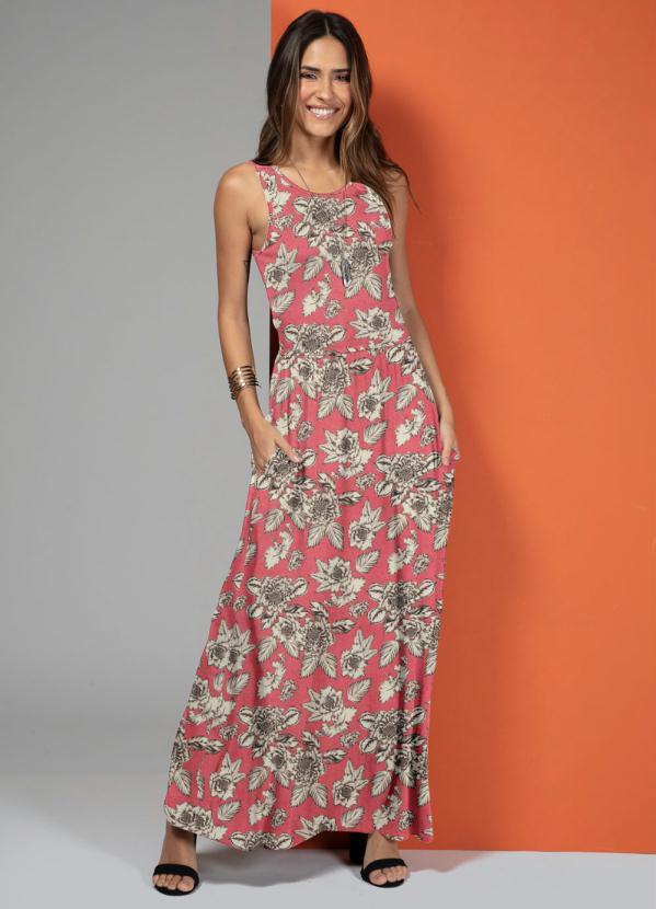 Quintess - Vestido Longo com Bolsos Floral Rosa