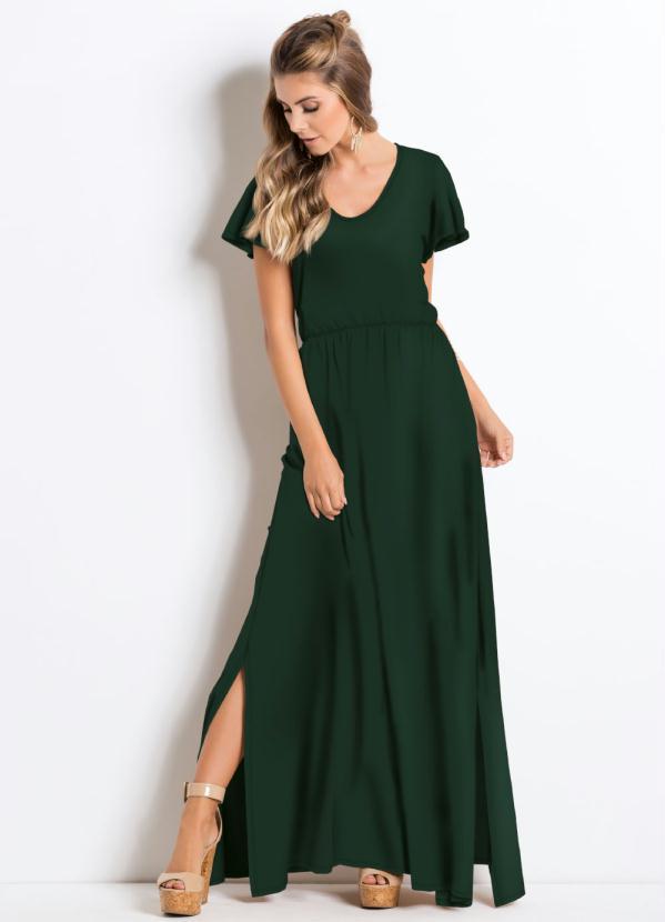 Quintess - Vestido Longo com Fendas Verde