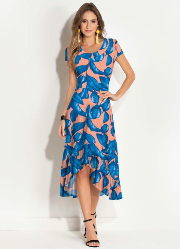 Quintess - Vestido Midi Mullet Folhagem Azul