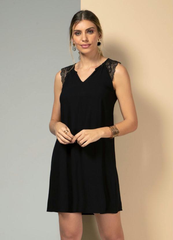 Quintess - Vestido Preto com Detalhe em Renda