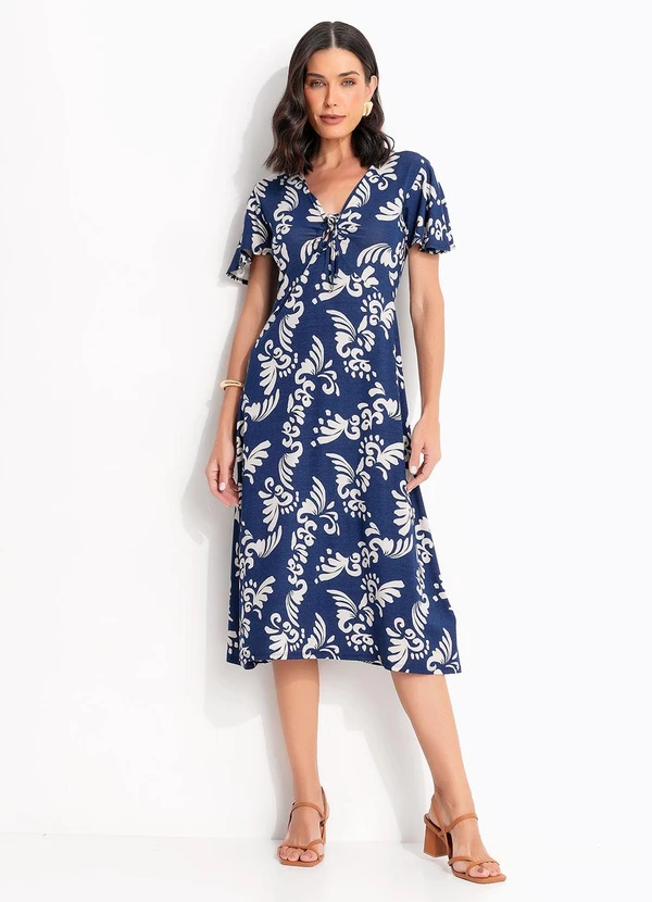 Quintess - Vestido Arabescos Marinho em Malha de Viscose