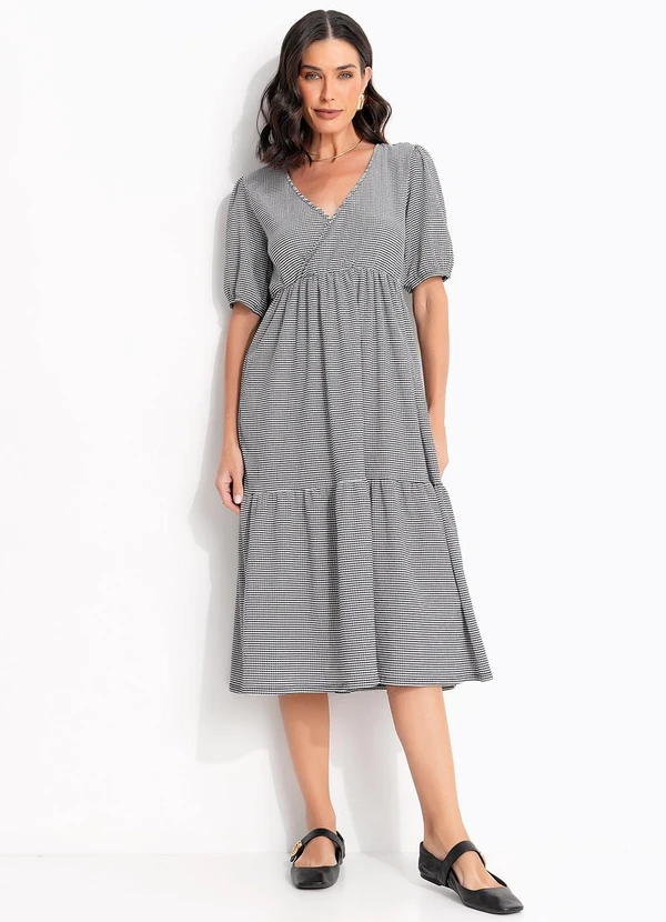 Quintess - Vestido Xadrez Preto em Malha Texturizada
